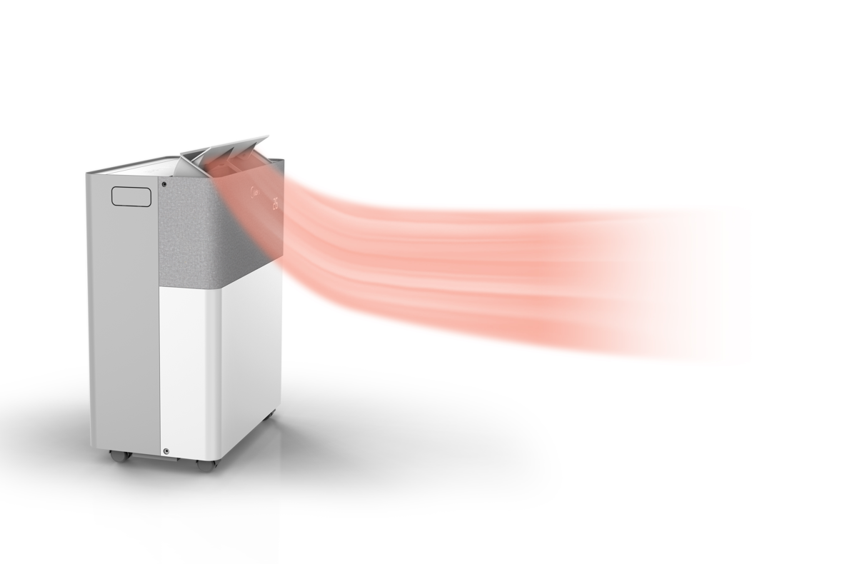 Met een koelvermogen van 3,5 kW, een SEER van 6.1 en warmtepomptechnologie met SCOP 4.0, presteert de PortaSplit vergelijkbaar met vaste split-units, maar blijft volledig mobiel. Dankzij de slimme luchtgeleiding koelt de unit met een opwaartse deflector en verwarmt hij met een neerwaartse deflector, voor optimale luchtcirculatie in elke situatie.